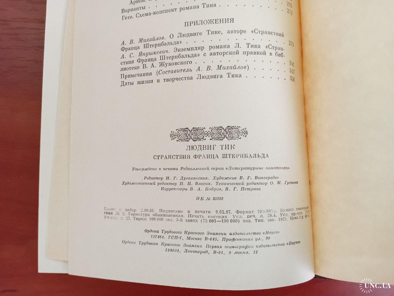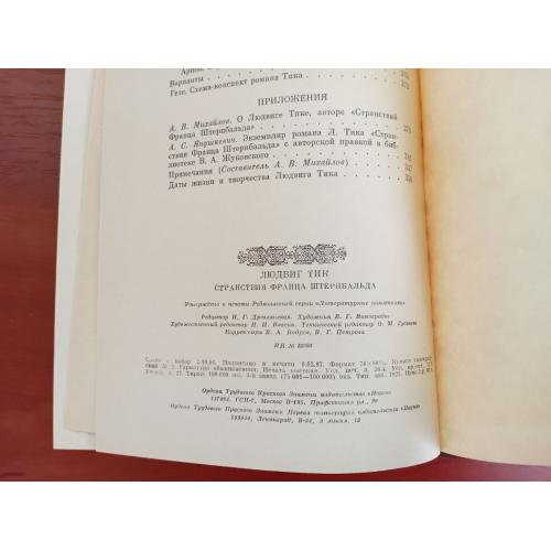 Людвиг тик, странствия францискаштернбальда, 1987, литературные памятники ан ссср