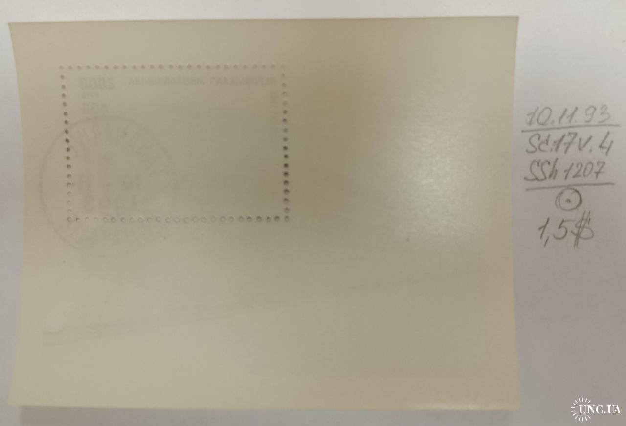1 блок з перфорацією. Погашений. 10. Листопад Водяний знак: Немає Зубцювання: 12