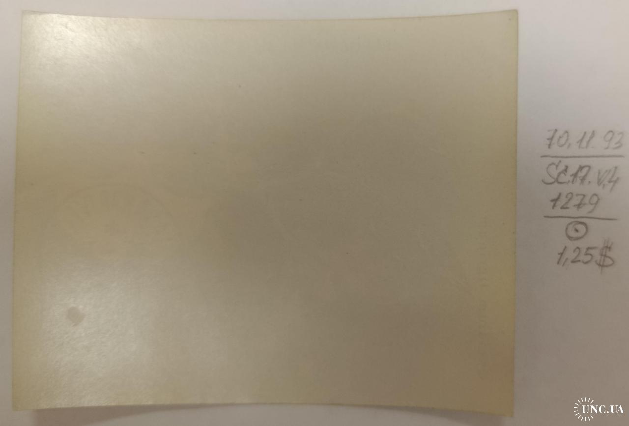1 блок без перфорації. Погашений. 10. Листопад Водяний знак: Немає Зубцювання: Imperforated