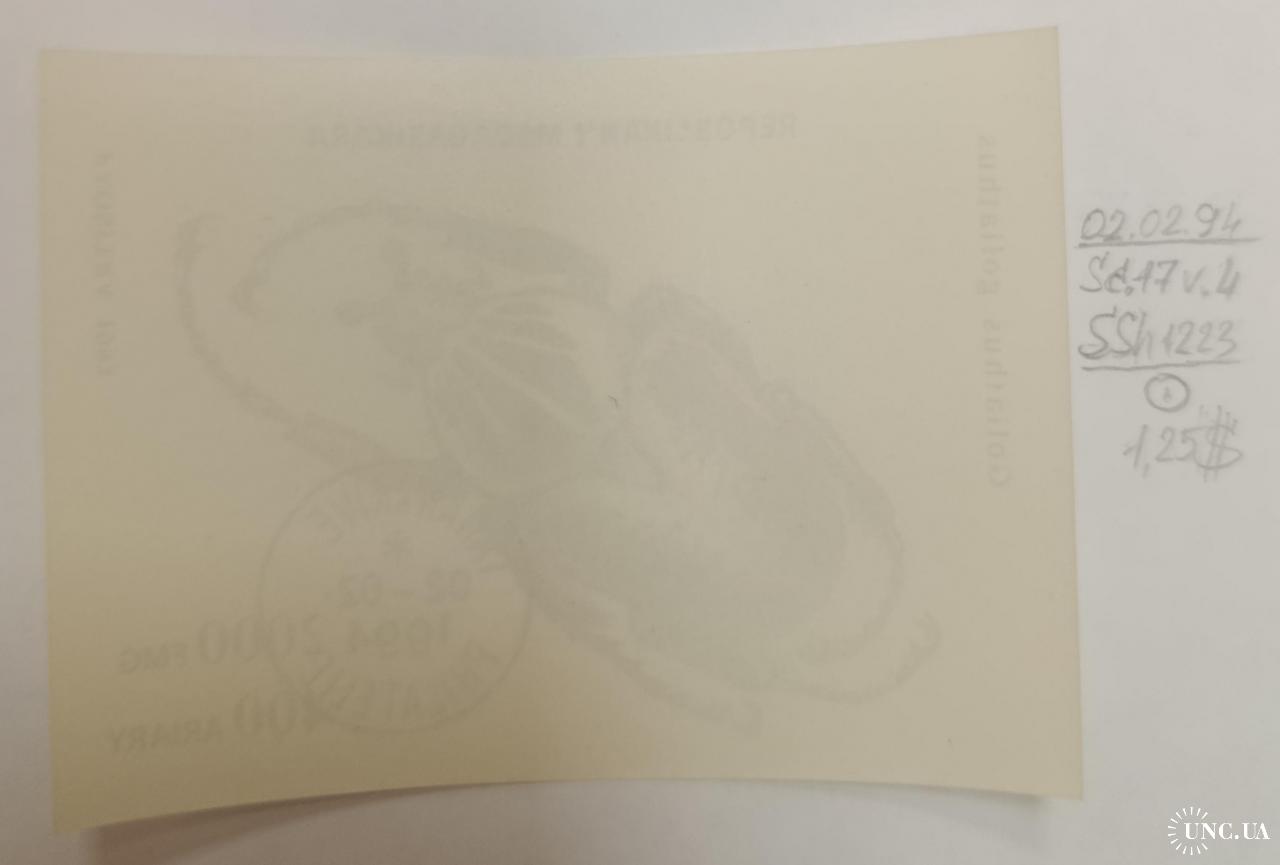 1 блок без перфорації. Погашений. 2. Лютий Водяний знак: Немає Зубцювання: Imperforated