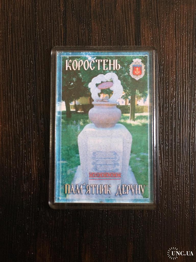 Магнит на холодильник — город Коростень памятник Деруну, сохранность на фото.