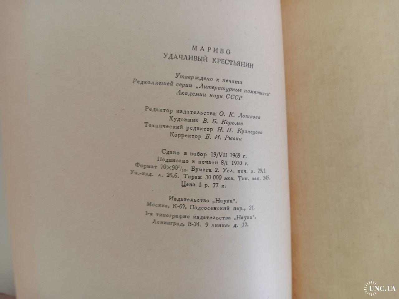мариво, удачливый крестьянин, 1970, литературные памятники ан ссср
