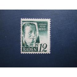 Марка Германия Французская оккупационная зона Баден 1947 стандарт Иоганн Петер Хебель 12 пф зел MNH