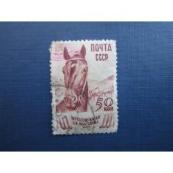 Марка СРСР 1939 сільськогосподарська виставка москва конярство фауна кінь 50 коп гаш