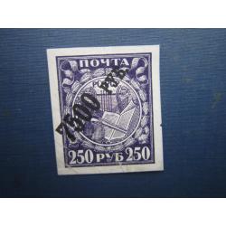 Марка СРСР РРФСР 1922 наддрук 7500 руб/250 руб діагональна крейдований папір без клею