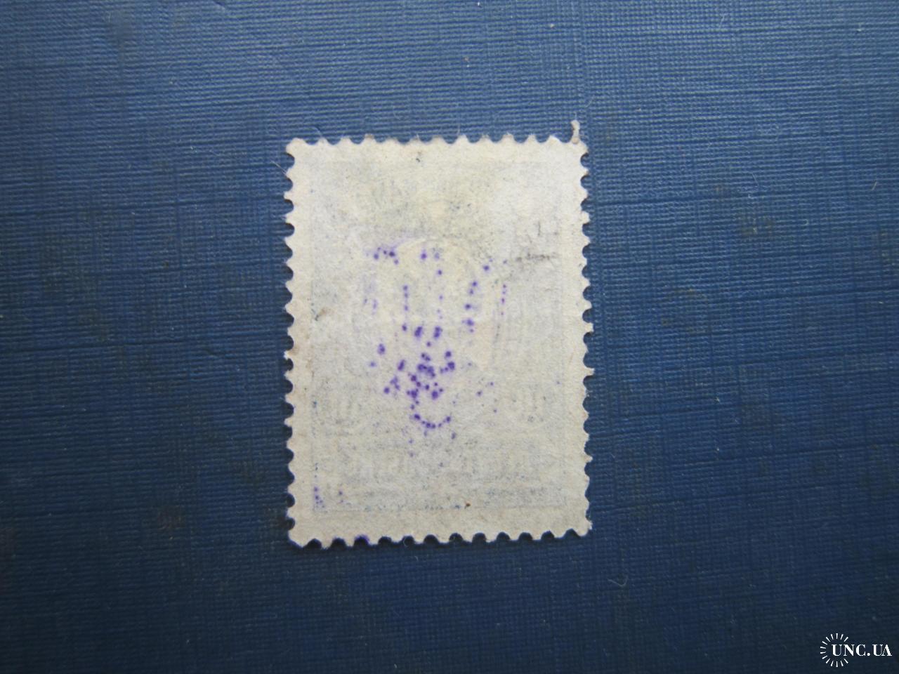 Марка Україна 1918 наддрук тризуб на 10 коп коп із зубцями Київ-2 абкляч без клею