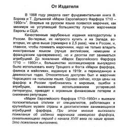 Книга содержит более 1300 изображений марок фарфоровых изделий, выпускавшихся в Германии с 1710 года по настоящее время.