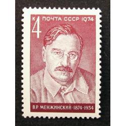 ПерсоналииМарки СССР 1974 года. 100 лет со дня рождения В. Р. Менжинского (1874 - 1934). MNH