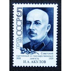 ПерсоналииМарки СССР 1988 года. 100 лет со дня рождения И. А. Акулова (1888 - 1939). MNH