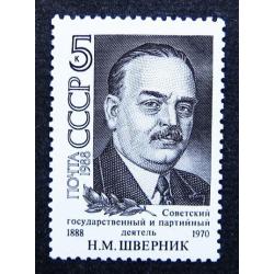 ПерсоналииМарки СССР 1988 года. 100 лет со дня рождения Н. М. Шверника (1888 - 1970). MNH