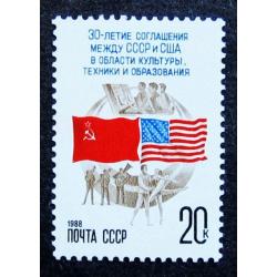 Другая темаМарки СССР 1988 года. 30 лет подписанию первого соглашения между СССР и США об обменах в области культуры, техники и образования. MNH