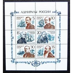 История и географияМарки СССР 1989 года. Адмиралы России. Лист. MNH
