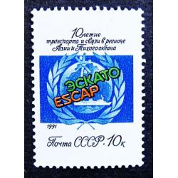 Другая темаМарки СССР 1991 года. 10 лет деятельности подразделения транспорта и связи Комиссии ООН в регионе Азии и Тихого океана (ЭСКАТО). MNH