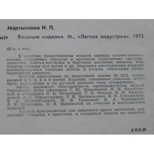 Мартиненко І.П.Вязані вироби.