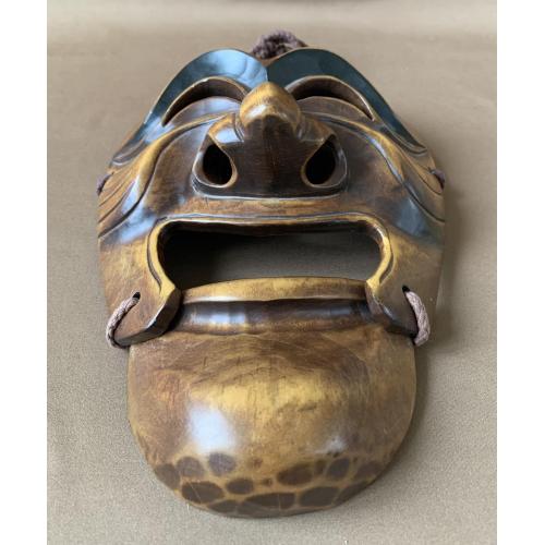 Зовнішній вигляд: Маска має характерні риси аристократа, зокрема великі ніздрі, вигнуті брови та очі. Її найвизначнішою особливістю є нижня щелепа, яка кріпиться окремо мотузками і може рухатися залежно від рухів голови актора.