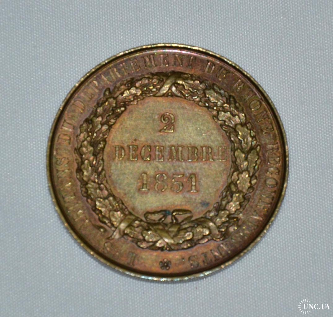 1851-1900Медаль Барон де Винсент Префет Рона 1851 г.