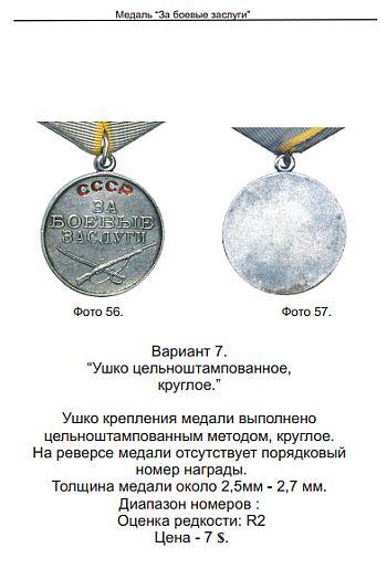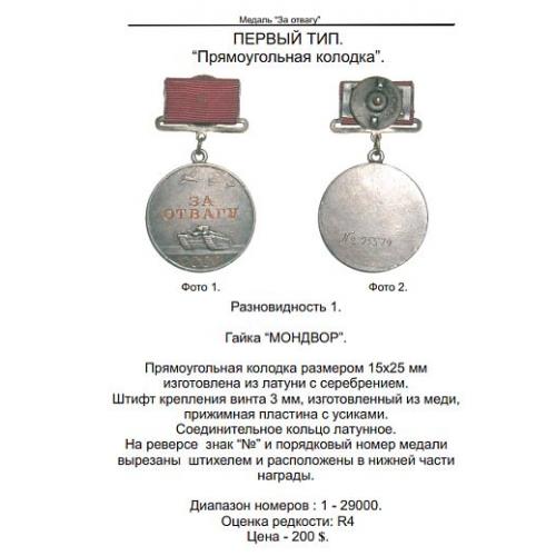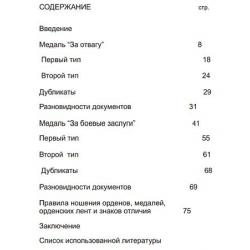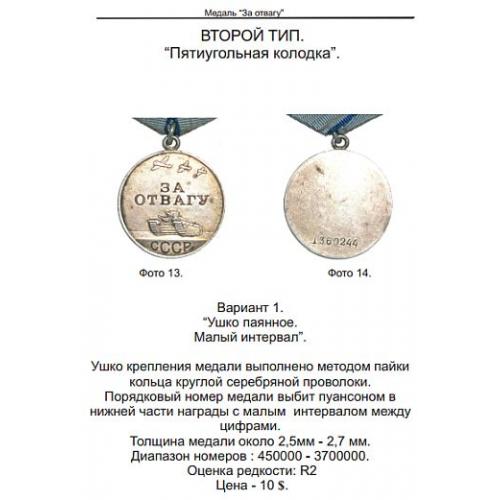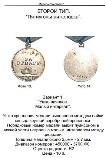 Приведены основные сведения о типах, разновидностях и вариантах медалей "За отвагу", "За боевые заслуги".