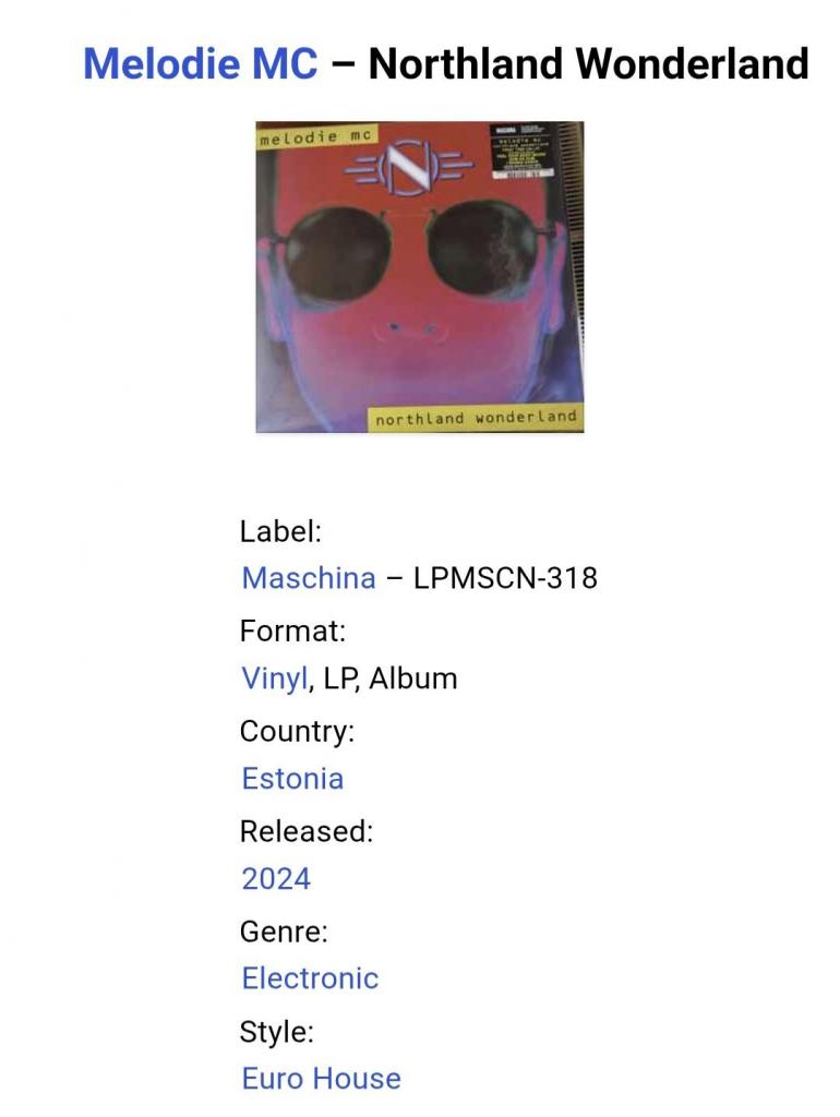 1981-2000Вінілова платівка. Перший, дебютний, в дискографії, студійний альбом, Шведського євро денс виконавця Кента Левгрона, більше відомого під сценічним ім,ям Melodie MC (Northland Wonderland) 1993. Випуск фірми (Maschina) Estonia, 2024-ий рік. Лімітований тираж (Limited Edition). Видання нове, запаковане. Категорія S/S. Відправка по Україні службами доставки: Нова Пошта, Укр Пошта, Делівері. Також відправляємо посилки за кордон по цілому світу.