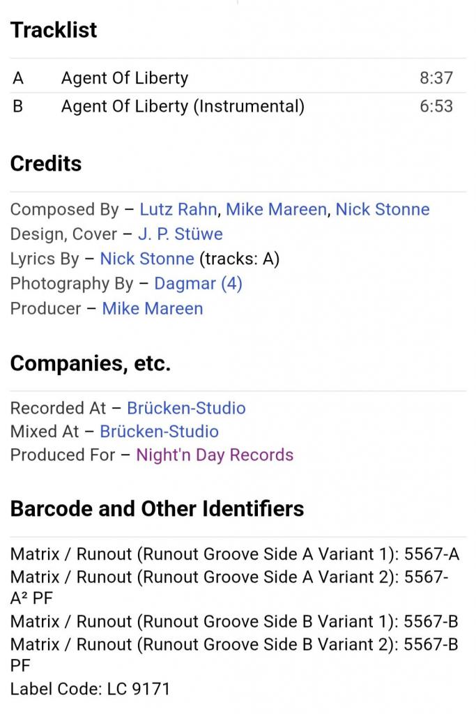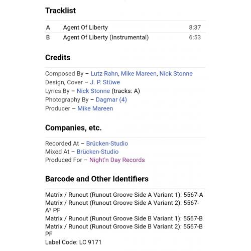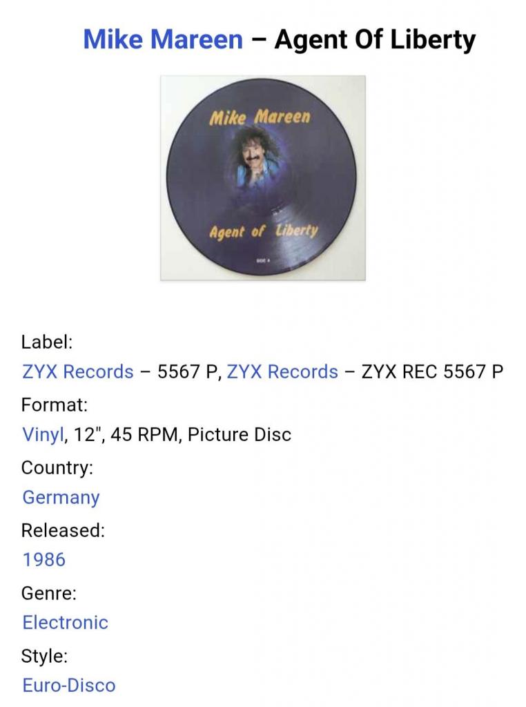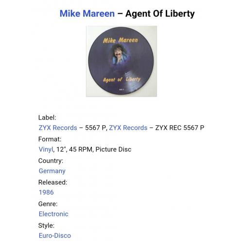 Вінілова платівка. Пікчер Диск. Чотирнадцятий, в дискографії, студійний максі сингл (EP 12), Німецького композитора, музиканта і виконавця стилів електропоп, італо диско, євро диско, Уве-Міхаеля Вішхоф, більше відомого під сценічним ім,ям Майк Марін (Agent Of Liberty) 1986. Випуск фірми (Zyx Records) Germany, 1986-ий рік. Оригінальне, рідне, першопресове, Німецьке видання на пікчер диску (Picture Disc). Лімітований тираж (Limited Edition). Стан платівки ЕХ+. Конверт твердий прозорий поліетилен. Відправка по Україні службами доставки: Нова Пошта, Укр Пошта, Делівері. Також відправляємо посилки за кордон по цілому світу.