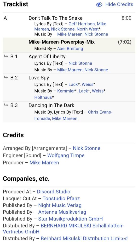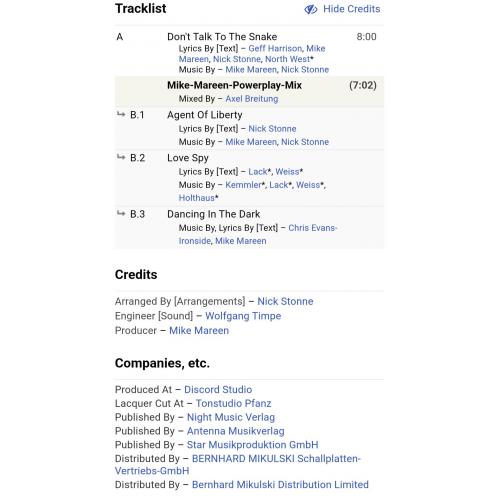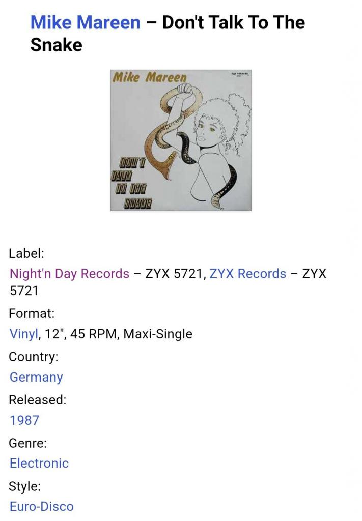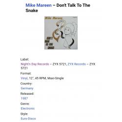 Вінілова платівка. Шістнадцятий, в дискографії, студійний максі сингл (EP 12), Німецького композитора, музиканта і виконавця стилів електропоп, італо диско, євро диско, Уве-Міхаеля Вішхоф, більше відомого під сценічним ім,ям Майк Марін (Don't Talk To The Snake) 1987. Випуск фірми (Zyx Records / Night'n Day Records) Germany, 1987-ий рік. Оригінальне, рідне, першопресове, Німецьке видання. Стан платівки ЕХ+. Конверт глянцевий. Стан конверту ЕХ+. Відправка по Україні службами доставки: Нова Пошта, Укр Пошта, Делівері. Також відправляємо посилки за кордон по цілому світу.