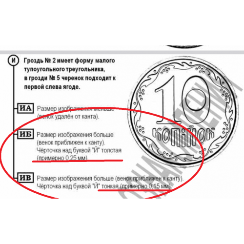 Україна 10 копійок 2005 р., штампи 2ИБм та 2ИВм