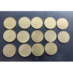 Україна 25 копійок, 14 штук, без повторів!