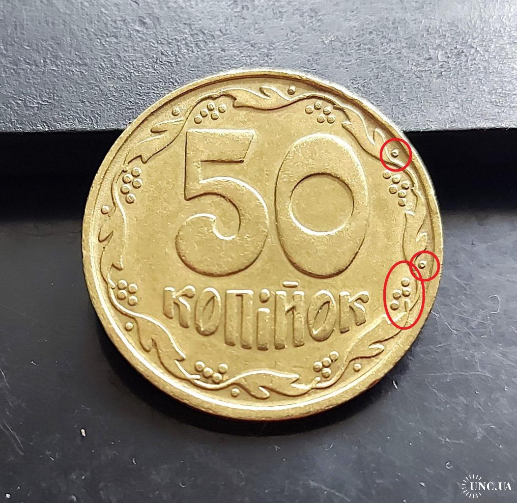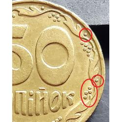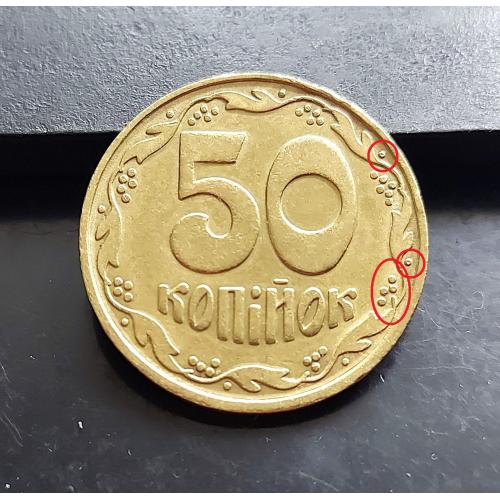 Україна 50 копійок 1992 р., 1БАс, чотири ягоди, дірочки, середній гурт