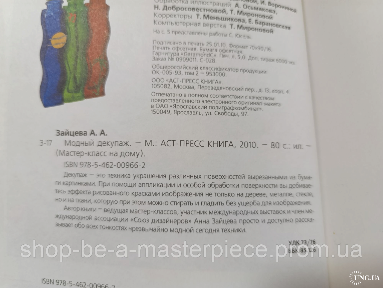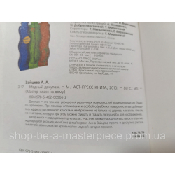 Модный декупаж Зайцева Анна Анатольевна 2010 г. Страниц: 80 (Офсет) Обложка мягкая цветные иллюстрации Размеры: 214x164x6 мм Язык русский Состояние новойОтветы продавца на ваши вопросы