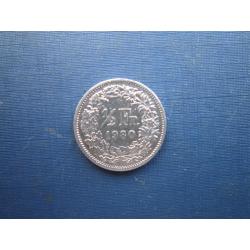 Монета 1/2 половина франка Швейцарія 1980