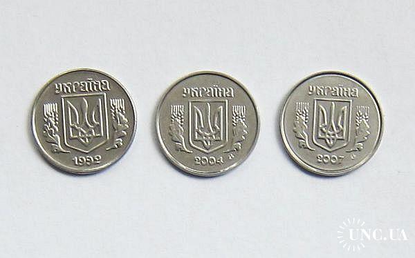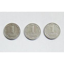 Монета 1 копейка 1992, 2003, 2004, 2007 годы (не были в обращении), 4 шт. Украина.