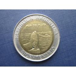 Монета 1 песо Аргентина 2010 Мар дел Плата фауна морской котик корабль
