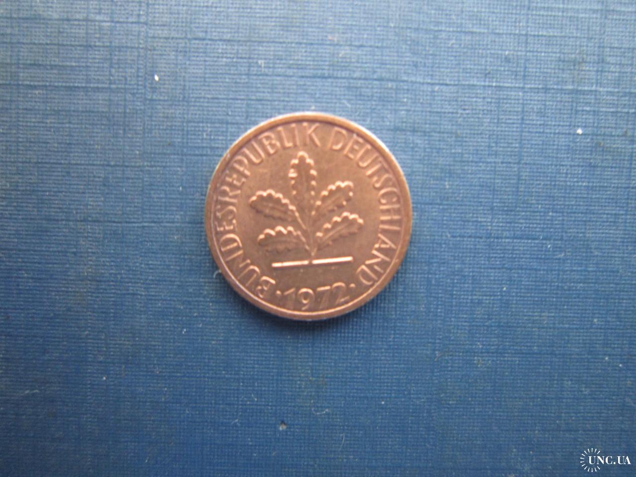 Монета 1 пфеніг Німеччина ФРН 1972 D