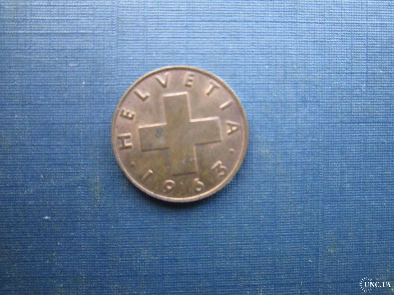 Монета 1 раппен Швейцарія 1963