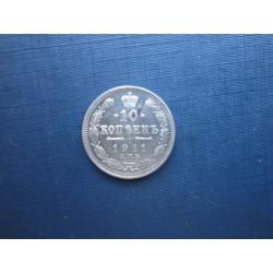 Монета 10 копеек российская империя 1911 ЭБ сохран серебро