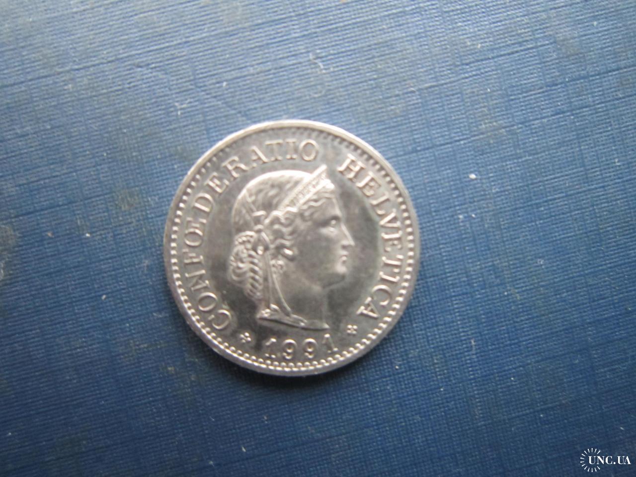 Монета 10 раппен Швейцарія 1991