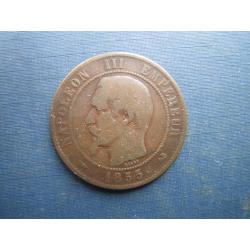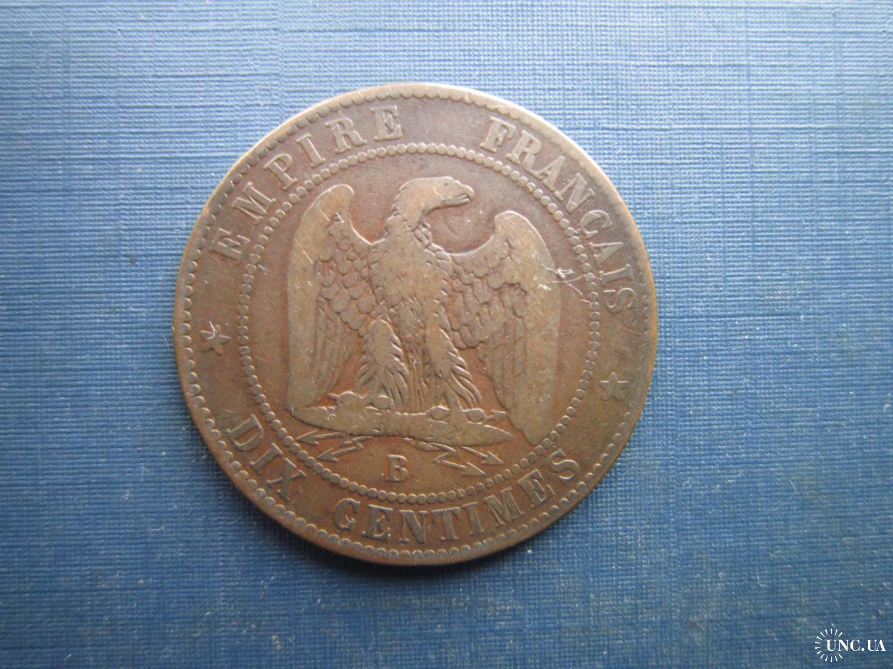 Монета 10 сантимів Франція 1855 В Руан Наполеон III гарна