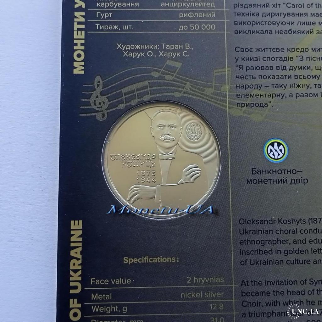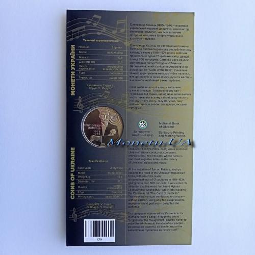 Пам'ятна монета "150 років від дня народження Олександра Кошиця" 2025 рік / Україна / НБУ / в сувенірній упаковці / буклет