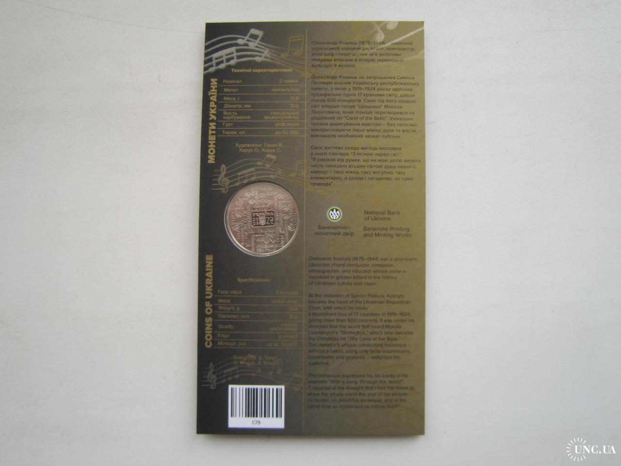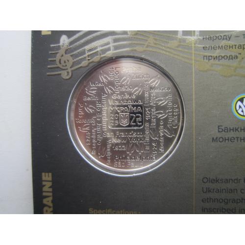 Монета 2 гривні НБУ Україна 2025 в буклеті Олександр Кошиць