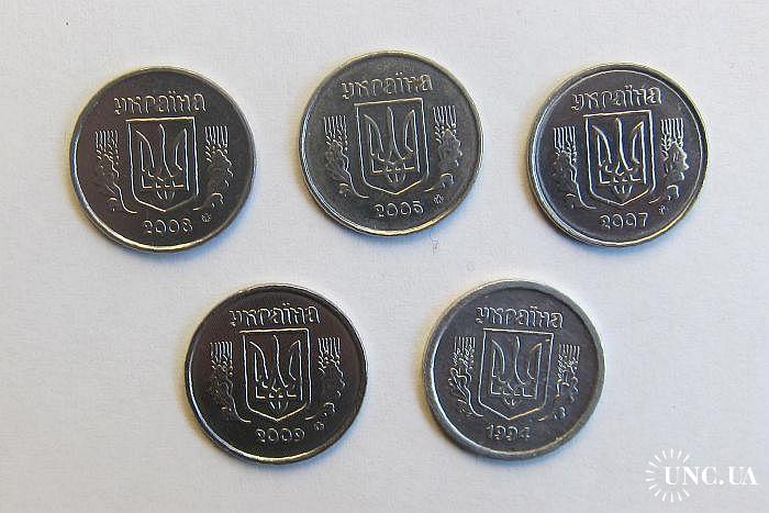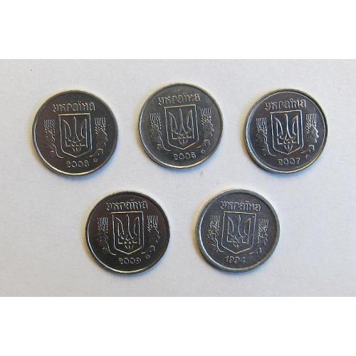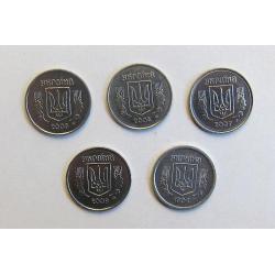 Монета 2 копейки 1994, 2005, 2007-2009 (не были в обращении), 5 шт., Украина
