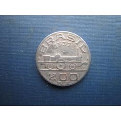 Монета 200 рейс Бразилія 1937 транспорт паровоз