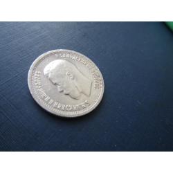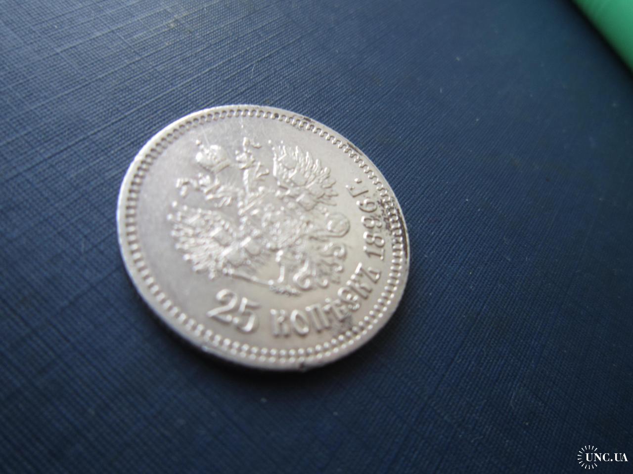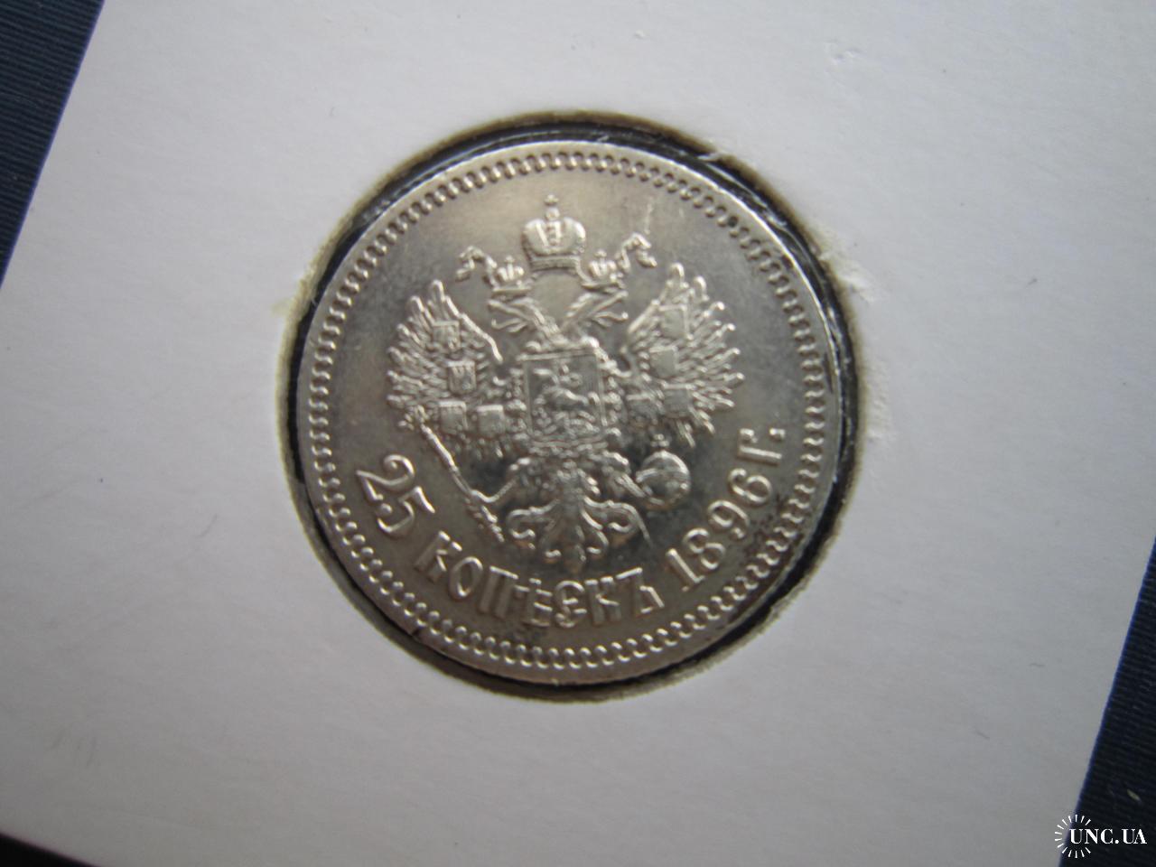 Монета 25 копеек российская империя 1896 Николай II серебро оригинал неплохая