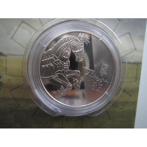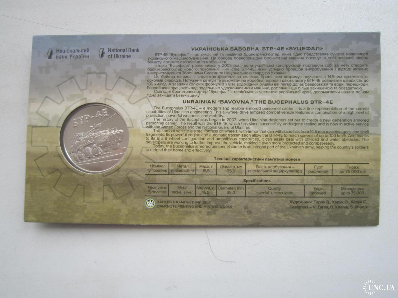 Монета 5 гривень НБУ Україна 2024 в буклеті Українська бавовна БТР-4Е Буцефал