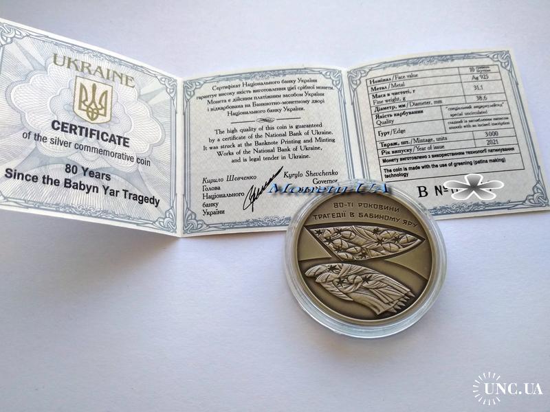 Пам'ятна монета "80-ті роковини трагедії в Бабиному Яру" 2021 рік Україна НБУ