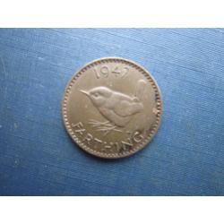 Монета фартинг 1/4 пенні Великобританія 1947 фауна птах