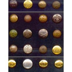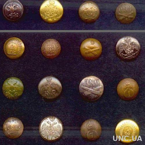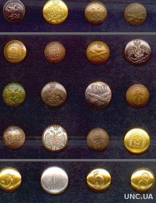 Цветные иллюстрации военных мундирных пуговиц, много рисунков из различных документов.