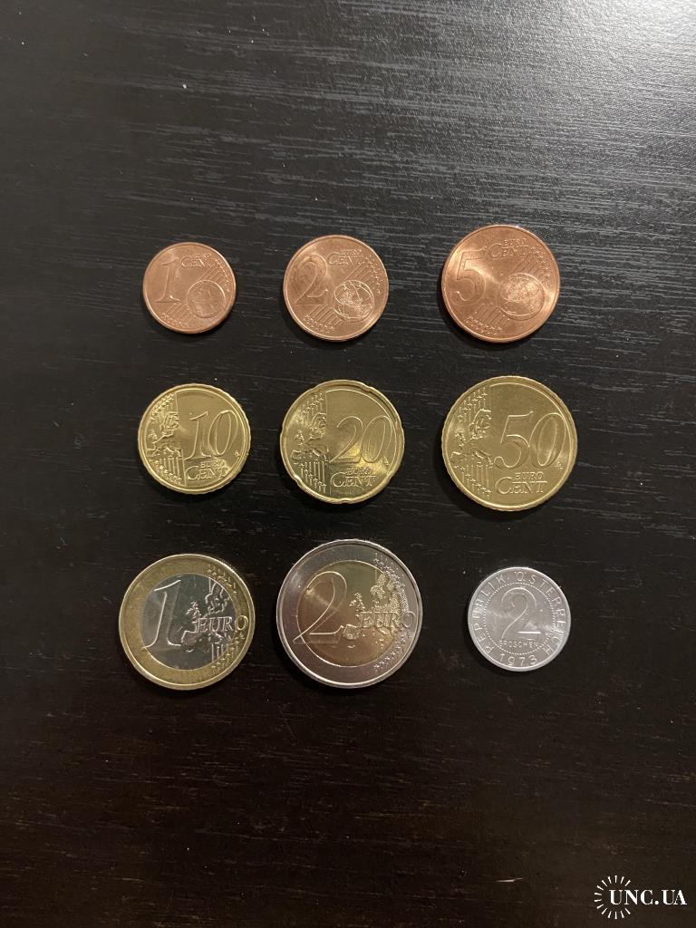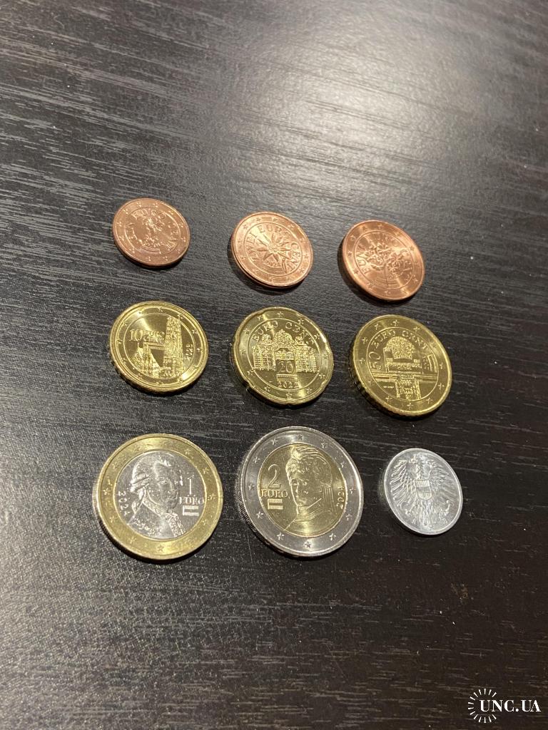 Набір євро монет - Австрія (2021 - 2024) + подарункова 2 грошена 1973 р.