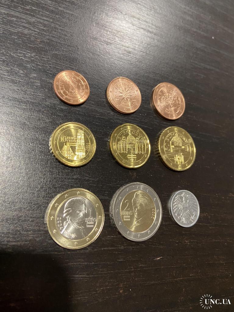 ОригиналНабір євро монет - Австрія (2023 - 2024) + подарункова 2 грошена 1982 р.