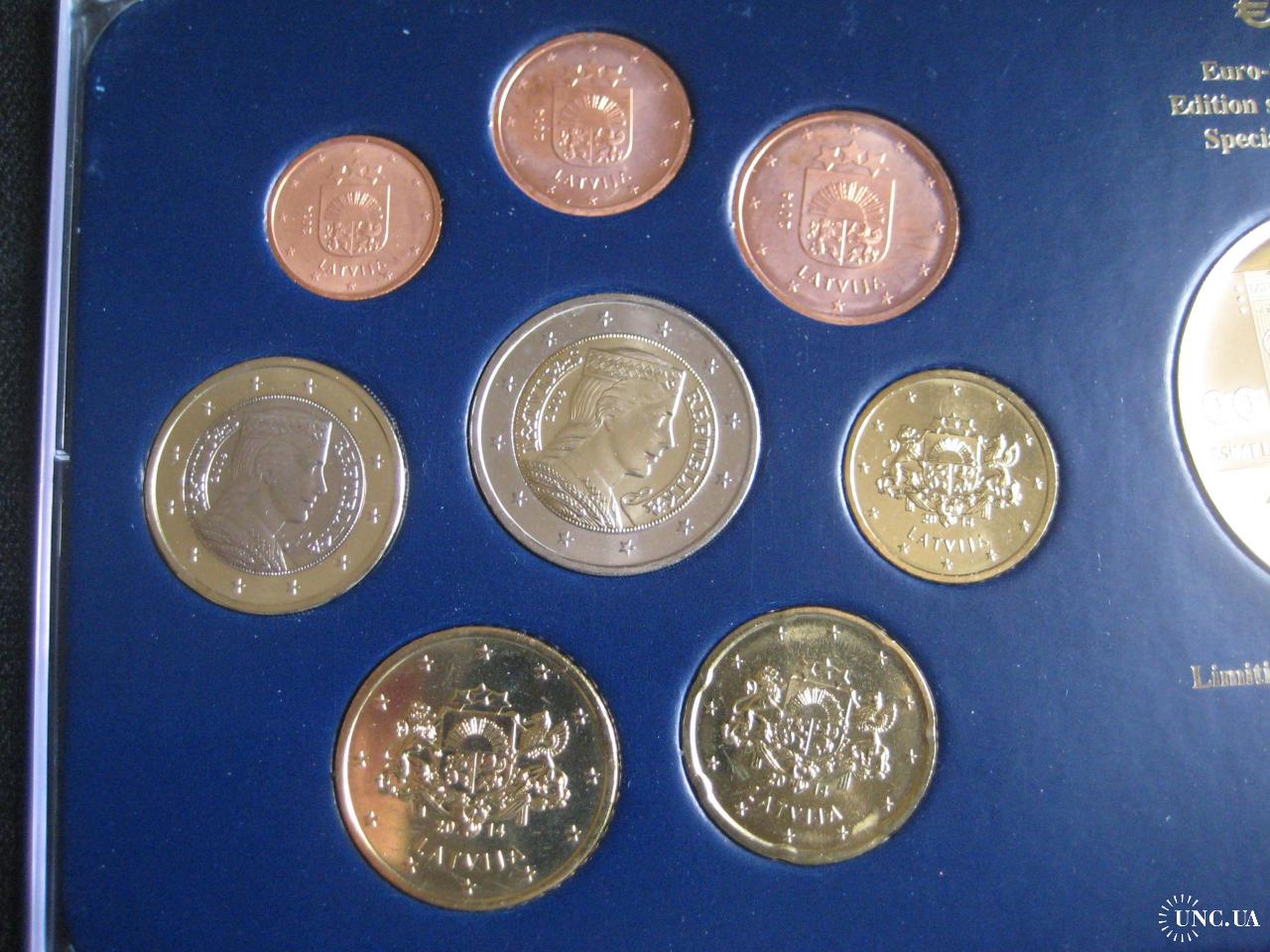№2901. Метал - біметал,латунь. Оригінальний набір монет - 2,1 євро та 50,20,10,5,2,1 євроцент + Жетон Латвія 2014 рік. Монети в доброму колекційному стані. Пересилка - Нова пошта, Укрпошта. Для киян можливість зустрічі та перегляду (неділя метро Нивки). В РФ и Белоруссию не отправляю!