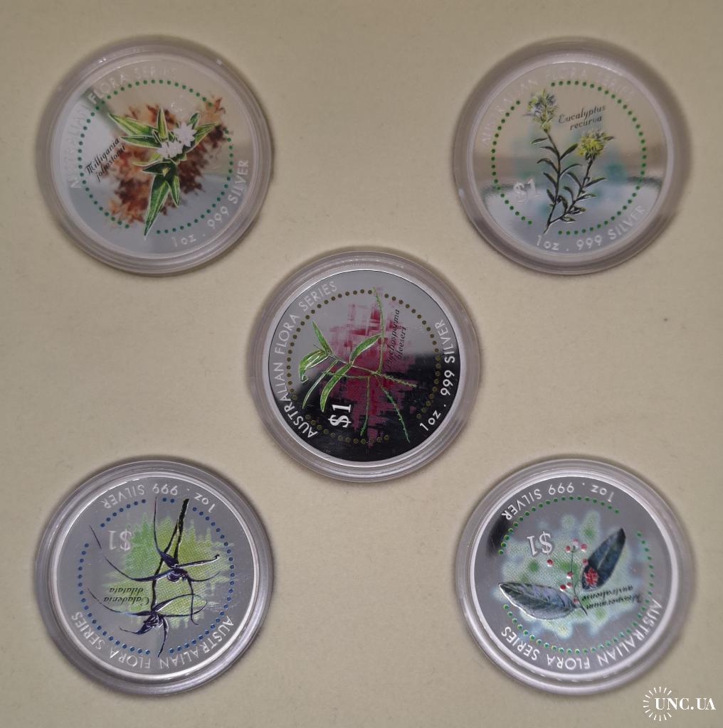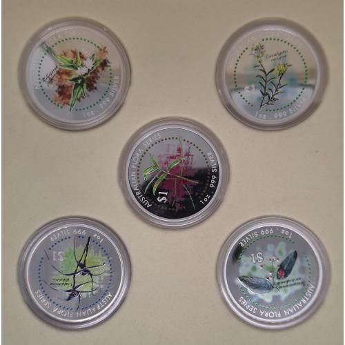Набір з 5 срібних монет Островів Кука 1999 року, серія «Австралійська флора»