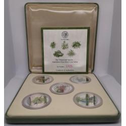 Цей барвистий набір монет висвітлює п'ять видів рослин Австралії, що перебувають під загрозою зникнення, та символізує потребу їх збереження.